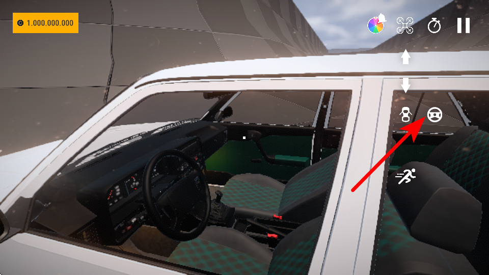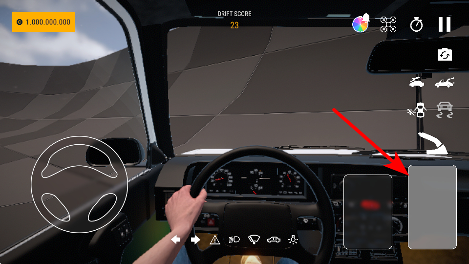 2、驾驶过程中,点击红色箭头指向的视角切换按钮,调整车内视角,更清晰地观察赛道情况,提升驾驶的操控精准度。