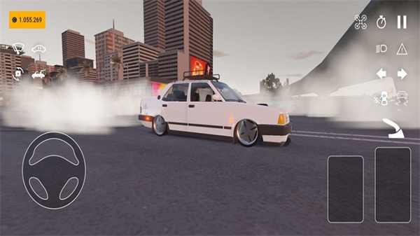 3、进入漂移路段后,操作红色箭头指向的刹车按钮,配合方向盘转向触发漂移,积累漂移分数,提升比赛表现。