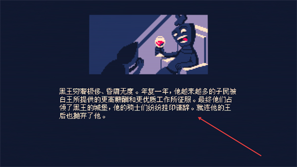 2、查看游戏背景剧情,了解黑王穷奢极侈、昏庸无度等设定,知晓剧情背景后点击屏幕推进至游戏实际操作环节。