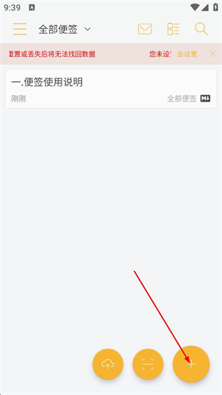 2、在小周便签首页,点击底部的+按钮,进入便签的编辑页面。