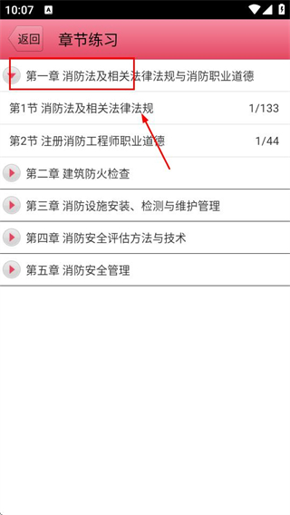2、在章节练习页面选择第一章第1节内容,进入对应题目页面。