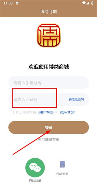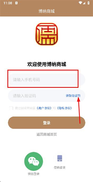 2、在登录页面填写手机号,勾选协议后,点击获取验证码。