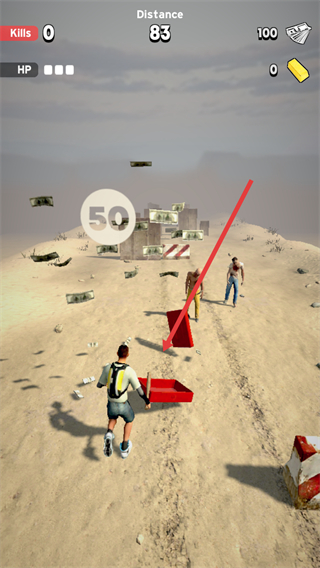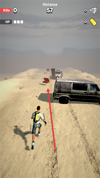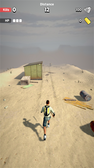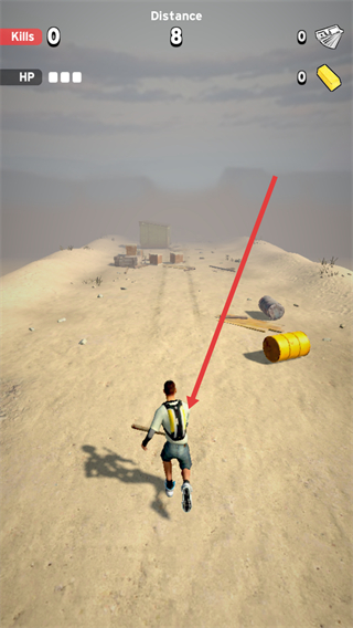 1、操控角色在沙漠中奔跑,躲避油桶等障碍,积累Distance数值。
