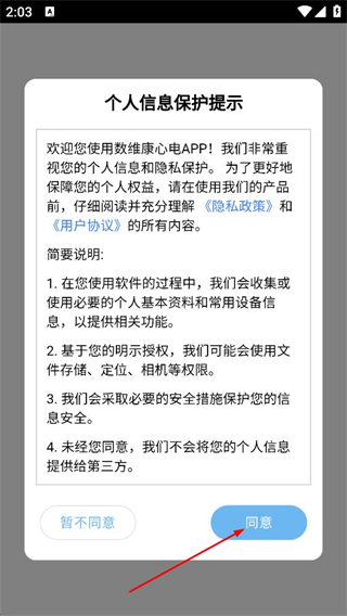 1、在个人信息保护提示弹窗中,点击同意,进入注册登录选择页面。