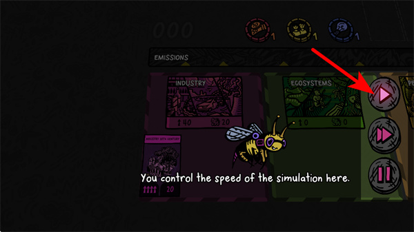 1、进入资源模拟界面后,点击红色箭头指向的速度控制按钮,调整模拟进程的速度,控制资源生成的节奏。