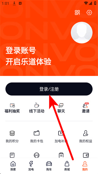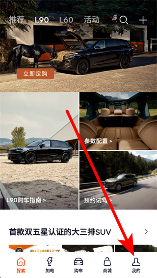 1、打开乐道汽车,进入首页后点击底部导航栏的我的,进入个人中心页面。