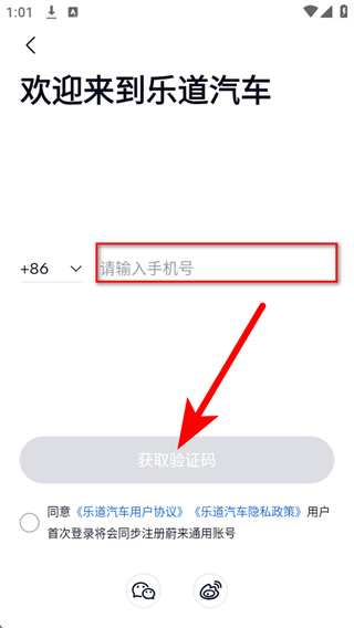 3、在手机号框中填写自己的手机号码,勾选相关协议,点击获取验证码。