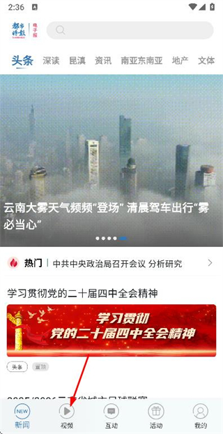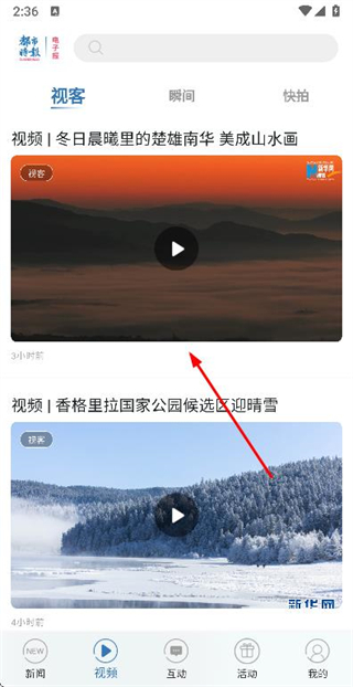 1、在首页点击底部的视频选项,进入视频内容列表页面。