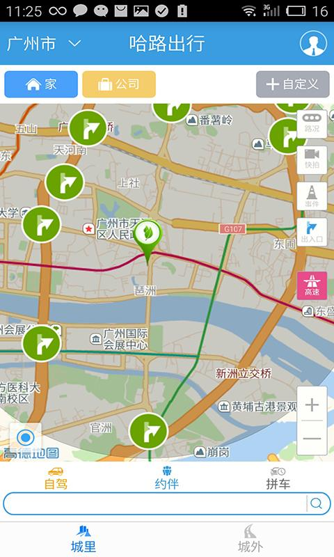 2.城里:实现常用路线的定制和导航、市区路况,周边高速出入口及约伴信息。