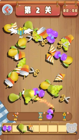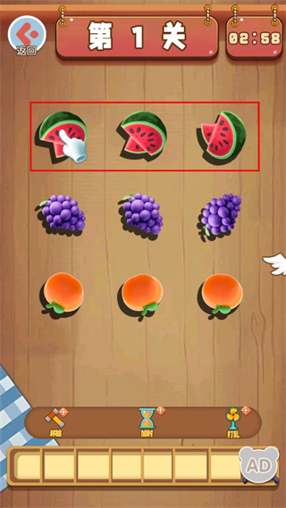 3、持续对界面中相同种类的水果进行点击操作,完成本关要求的水果匹配任务。