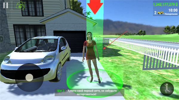 3、在居民区找到待售车辆,按照提示完成购买操作,获取属于自己的第一辆车,为后续运营做准备。