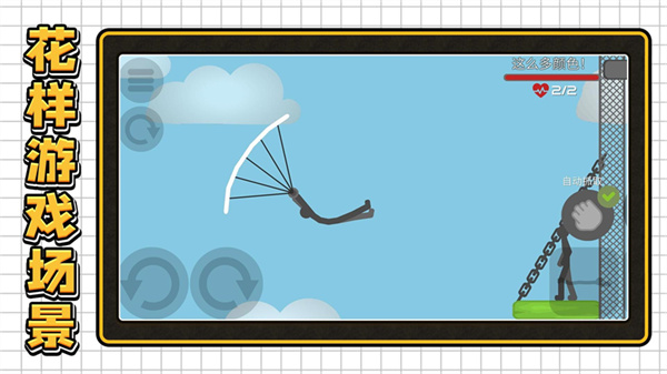 采用简洁的火柴人角色造型,角色动作灵活流畅,跑酷时的腾挪跳跃与对战时的出招攻击都极具张力,视觉呈现清爽且富有动感。