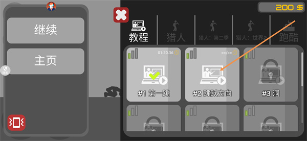 1、在游戏界面,点击教程选项,选择#2跳跃方向教程进入关卡。