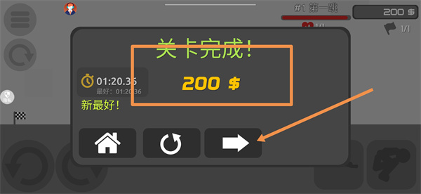 4、关卡完成后,点击箭头按钮,即可进入下一个游戏关卡继续挑战。