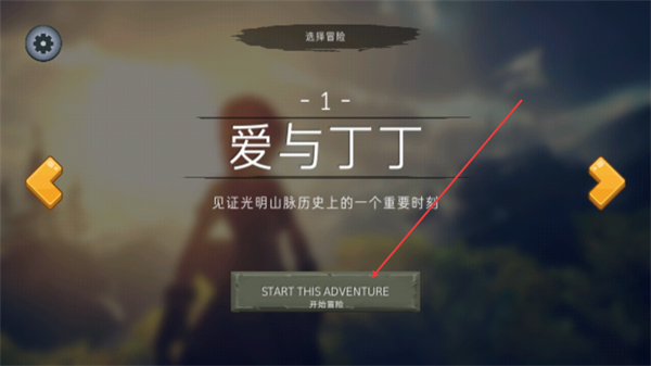 1、在选择冒险界面中,点击开始冒险按钮,即可开启爱与丁丁对应的冒险剧情。