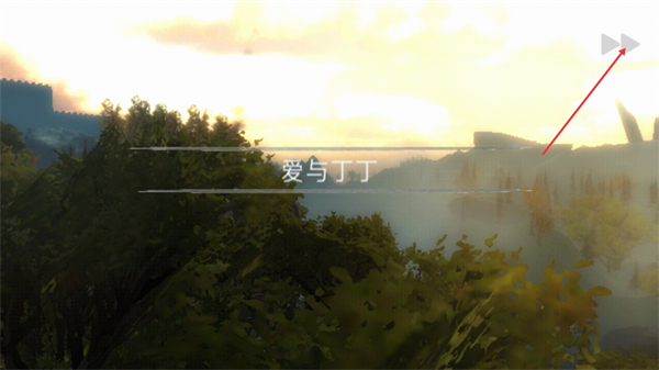 2、进入爱与丁丁的剧情场景后,点击右上角的箭头按钮,可推进该剧情场景的内容展示进程。