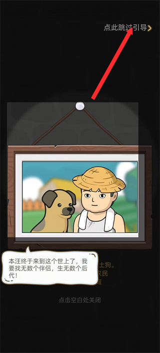 1、进入游戏后,点击红色箭头指向的土狗选项,选择初始狗狗角色,这是开启游戏养成的关键操作。