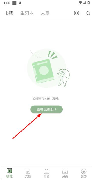 1、在收藏页面点击去书城逛逛按钮,进入书城页面。