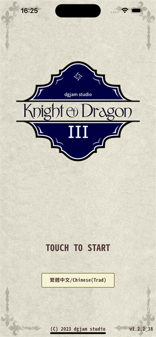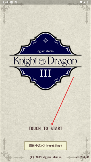 1、进入骑士与龙3的启动界面后,点击TOUCHTOSTART按钮,选择简体中文即可开启游戏。