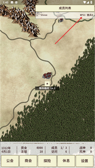4、进入世界地图界面后,查看顶部成员列表,可前往斯科格村Lv.1开展游戏探索。