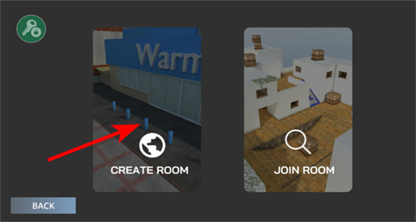 1、进入房间选择界面后,点击CREATE ROOM选项,创建专属的对战房间,进入对应实战对战场景。