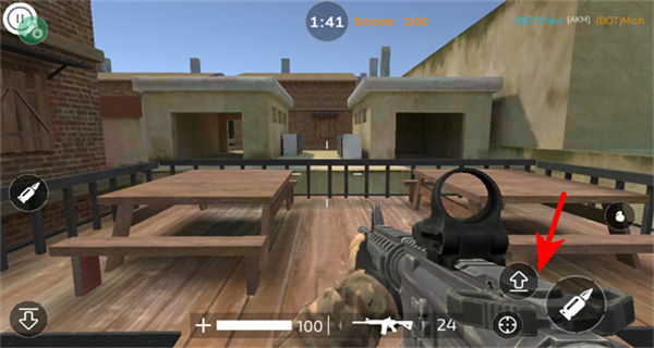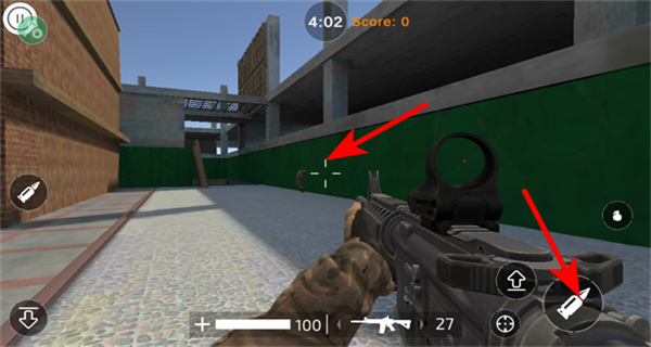 3、瞄准场景中出现的敌方目标,配合武器操作向着目标发起攻击,通过击败敌方来积累对战分数。