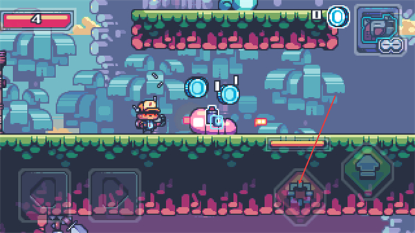 核心操作包含横移、跳跃、射击与闪避,双击方向键可触发无敌闪避,跳跃时能攀附墙壁,射击带有真实后座力。操作简洁同时保留进阶技巧空间,兼顾新手与资深玩家需求。