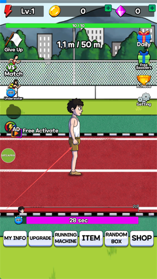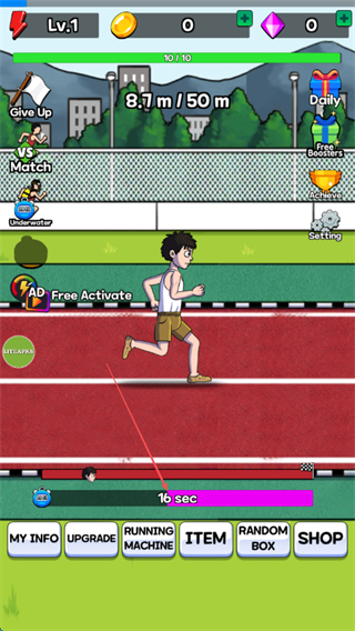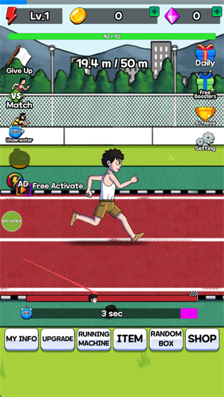 1、在赛道界面等待倒计时结束,角色自动进入赛跑状态,向50m目标前进。