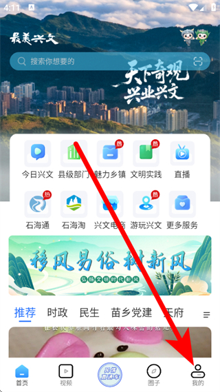 1、打开最美兴文,点击底部我的,进入个人页面。