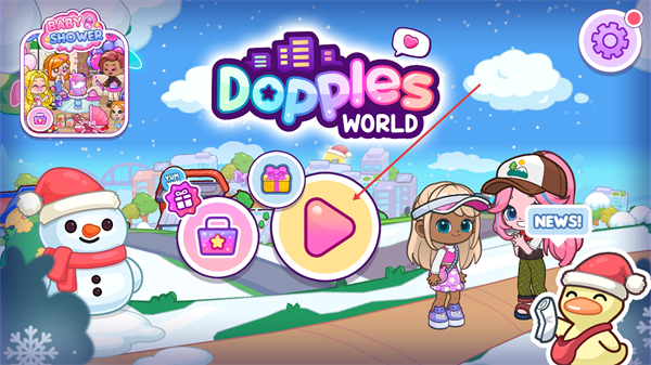 1、在多普莱斯世界的启动界面,点击中间的粉色播放按钮,即可进入游戏的主场景开始体验。