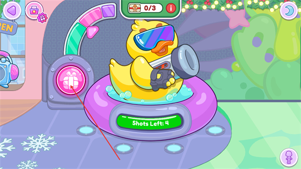 3、在该互动界面,点击带有礼物标识的按钮,利用剩余4次的射击机会来获取对应的奖励道具。