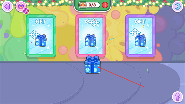 4、看到展示的礼盒后,点击对应礼盒完成互动,获取GET标识下的礼物道具,以此推进游戏进程。