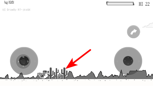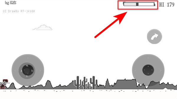 2、观察红色箭头指向的上方进度条,它会显示当前的推进距离,以此判断游戏进度,同时注意场景中的障碍物,及时调整移动方向避开。