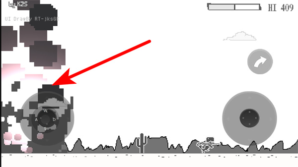 1、进入游戏后,通过左侧的WASD操控盘红色箭头指向区域控制角色移动,朝着场景中的目标方向前进,这是推进游戏的基础操作。
