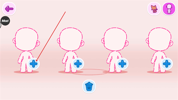 2、进入该界面后,点击空白角色旁的加号按钮可添加新角色,底部垃圾桶按钮用于删除角色。