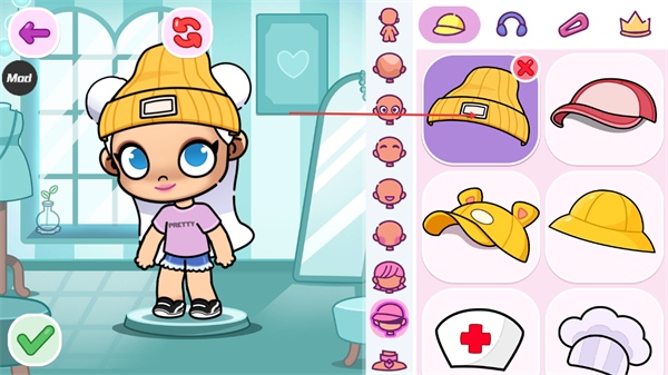4、在装扮界面的配饰分类下,选中对应的帽子样式并点击,就能为角色佩戴该帽子完成装扮。
