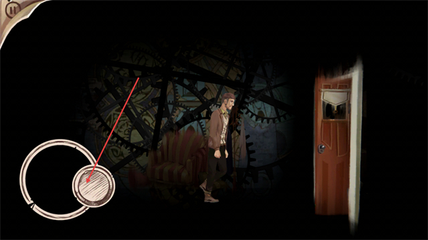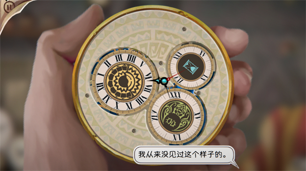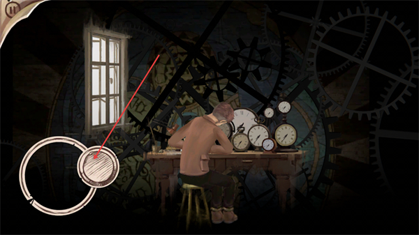 1、在当前场景中,你可操控左侧的操作环调整桌上的多座钟表指针,操控时间回到过去以推进游戏进程。