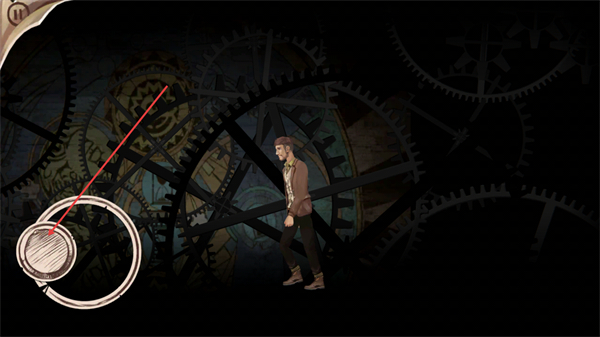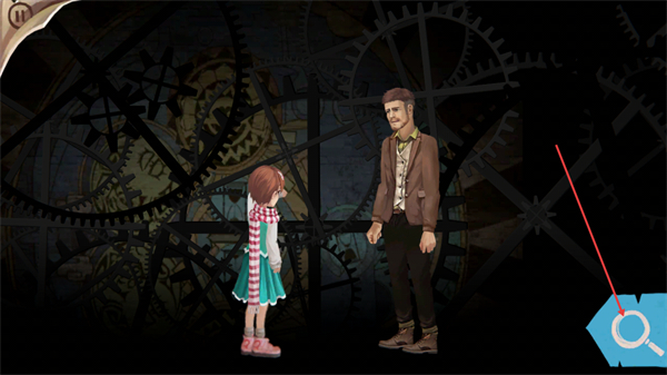 2、处于齿轮背景的场景时,点击左侧的圆形交互按钮,推进当前的剧情流程。