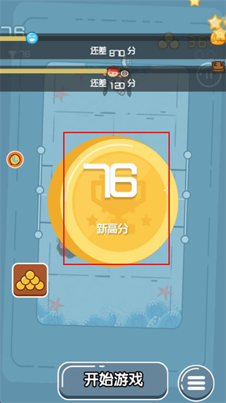 4、游戏结束后,查看显示的新高分数据,再找到开始游戏按钮,点击该按钮,开启新一轮游戏。