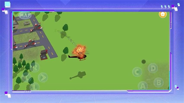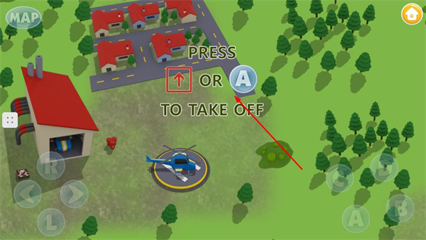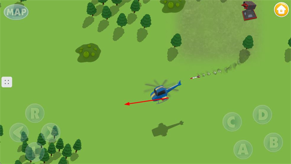 3、直升机起飞后,操控界面中的方向按钮,让直升机朝着指定的方向移动。