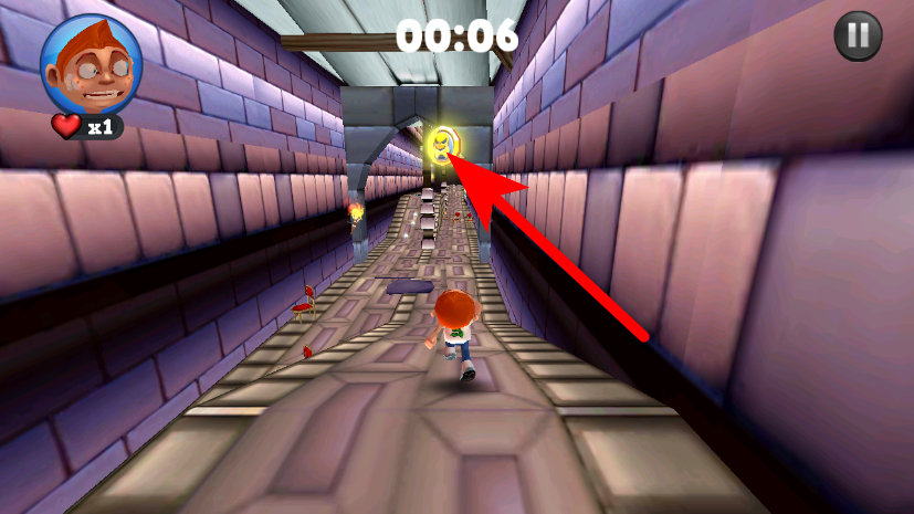 2、在游戏界面,控制角色移动,靠近前方目标道具进行收集。