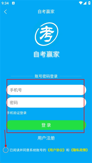 3、在登录页面填写信息,勾选协议后点击登录完成操作。