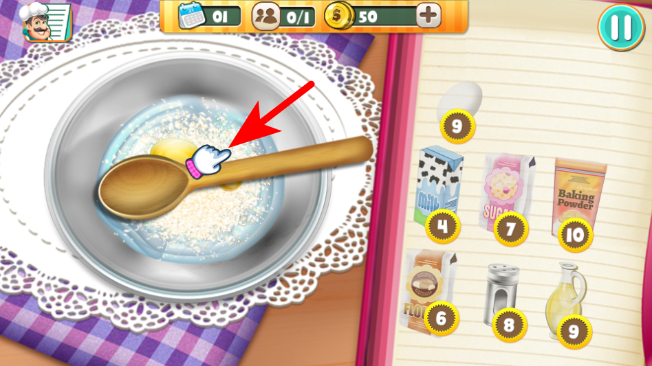 2、添加好食材后,点击容器旁的木勺,对容器内的原料进行搅拌混合,完成原料调配。