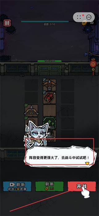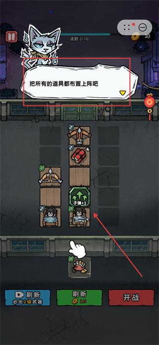 2、完成道具布阵后,点击界面底部的开战按钮,进入战斗环节开始挑战。