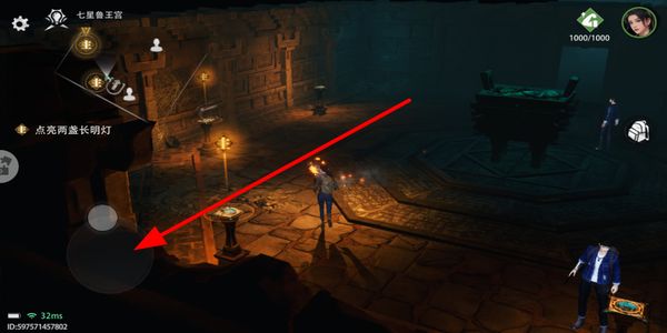2、进入场景后,通过移动操作操控角色行动,跟随主线任务提示,完成点亮长明灯等指定目标推进剧情。