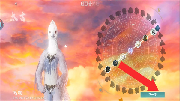 1、进入游戏剧情界面后,点击红色箭头指向的下一步按钮,推进剧情流程,开启游戏冒险的关键操作。