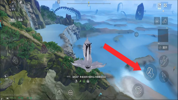 4、进入游戏主场景后,点击红色箭头指向的动作按钮,操控角色执行对应动作,推进场景探索进度。