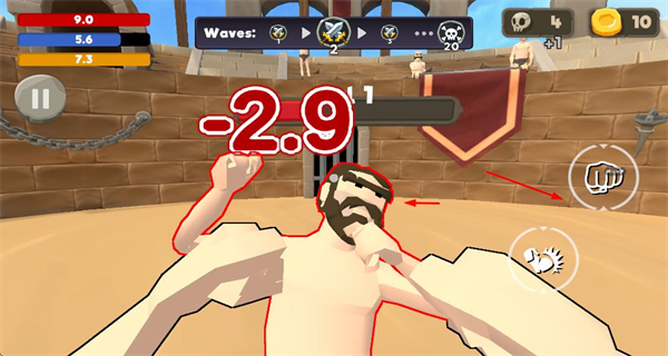 角斗士模拟器竞技场之战是一款3D多人动作格斗游戏,采用搞笑夸张的画面与动作设计,玩家将与其他玩家在竞技场中展开激烈厮杀,只有坚持到最后的人才能赢得胜利,场景内散落着各类近战武器与远程道具,拾取后可有效提升自身攻击力,让整场对抗变得更加刺激,也更具趣味性。