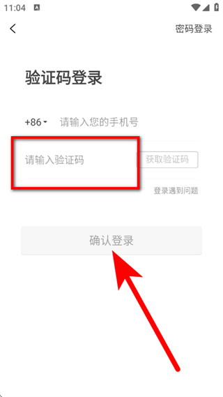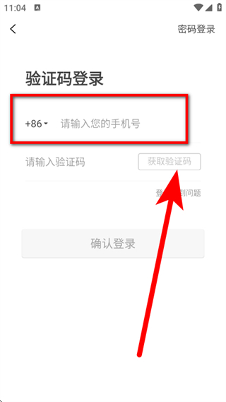 3、在验证码登录页面,输入手机号,点击获取验证码。