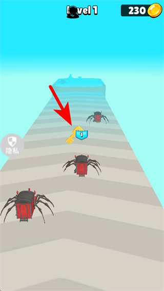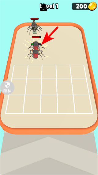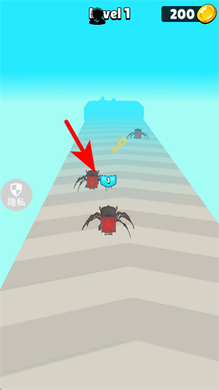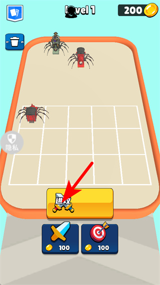 1、进入Level1关卡后,点击红色箭头指向的蜘蛛角色,进入战斗准备界面,这是开启本关卡战斗关键操作。